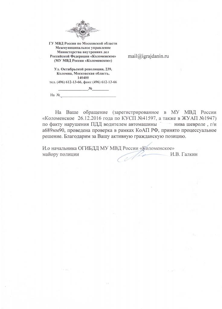 айГражданинОтправлено 26.12.2016: "ОГИБДД МУ МВД России «Коломенское»"