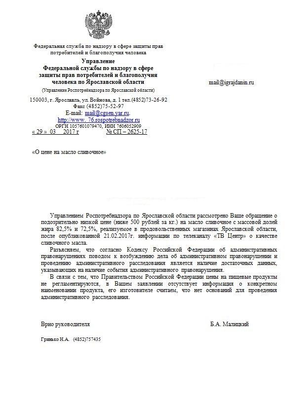 айГражданинОтправлено 03.03.2017: "Управление Федеральной службы по надзору в сфере защиты прав потребителей и благополучия человека по Ярославской области"