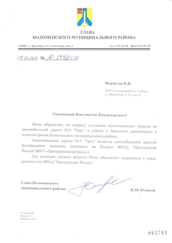 айГражданинОтправлено 09.07.2013: "Администрация Коломенского муниципального района"