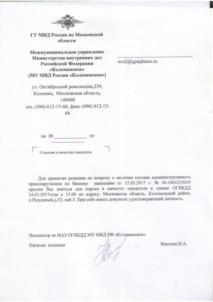 айГражданинОтправлено 15.05.2017: "Управление ГИБДД ГУ МВД РФ по Московской области"