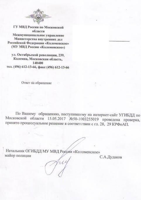 айГражданинОтправлено 11.05.2017: "ОГИБДД МУ МВД России «Коломенское»"