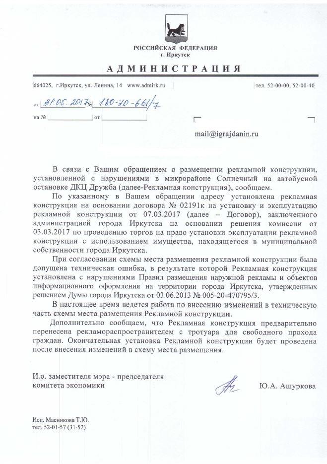 айГражданинОтправлено 11.05.2017: "Администрация города Иркутска"