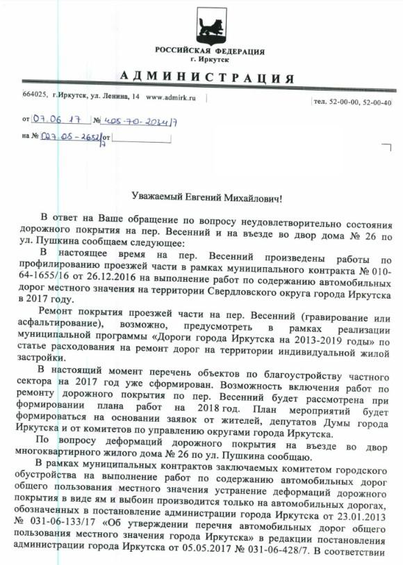 айГражданинОтправлено 11.05.2017: "Администрация города Иркутска"