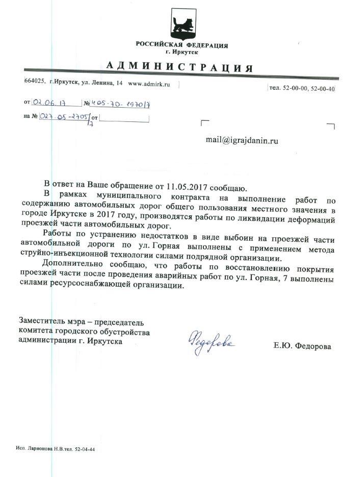 айГражданинОтправлено 11.05.2017: "Администрация города Иркутска"