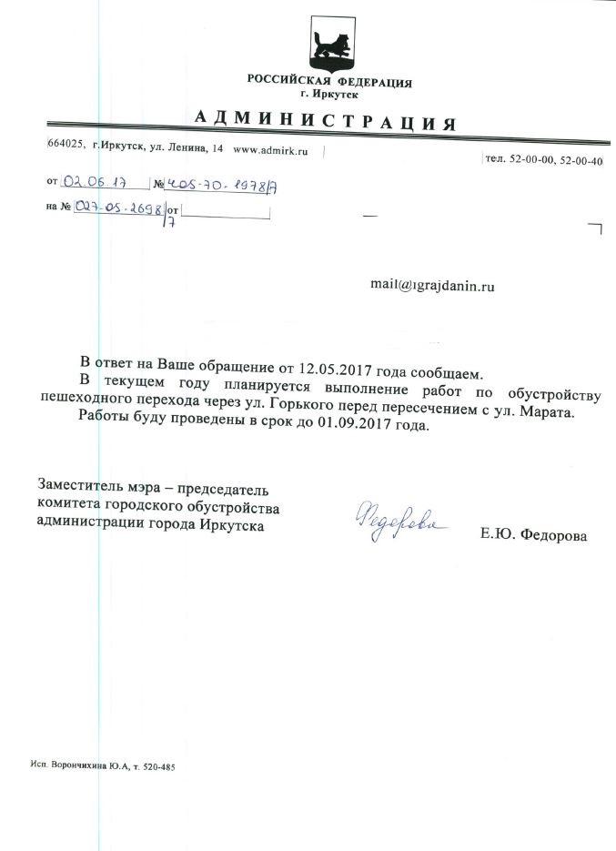 айГражданинОтправлено 11.05.2017: "Администрация города Иркутска"