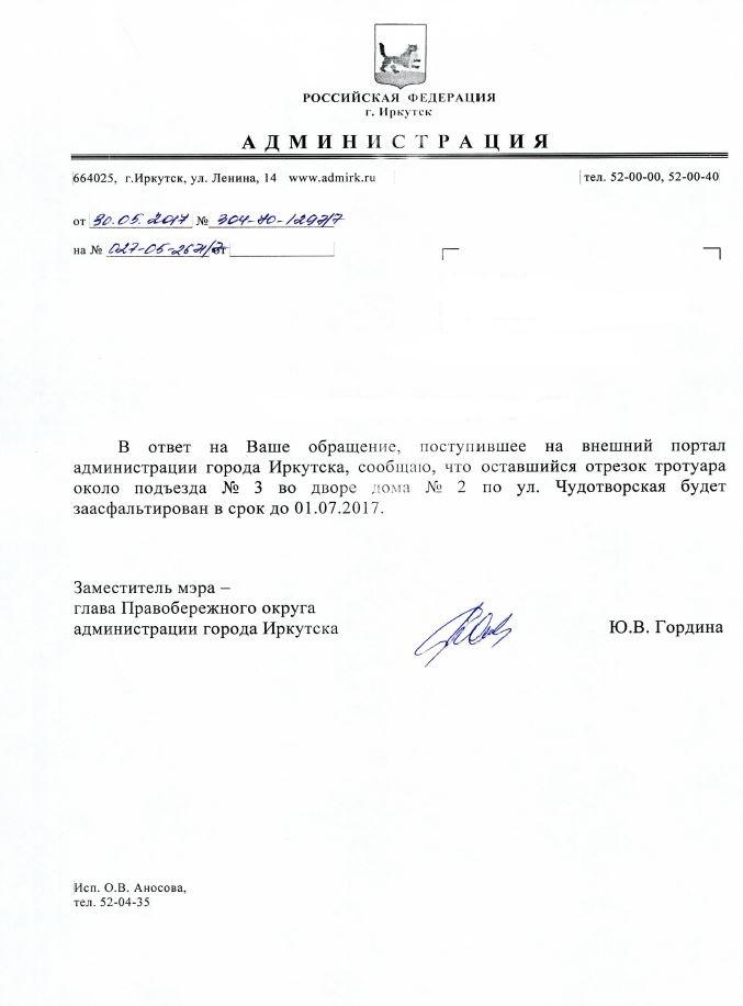 айГражданинОтправлено 11.05.2017: "Администрация города Иркутска"