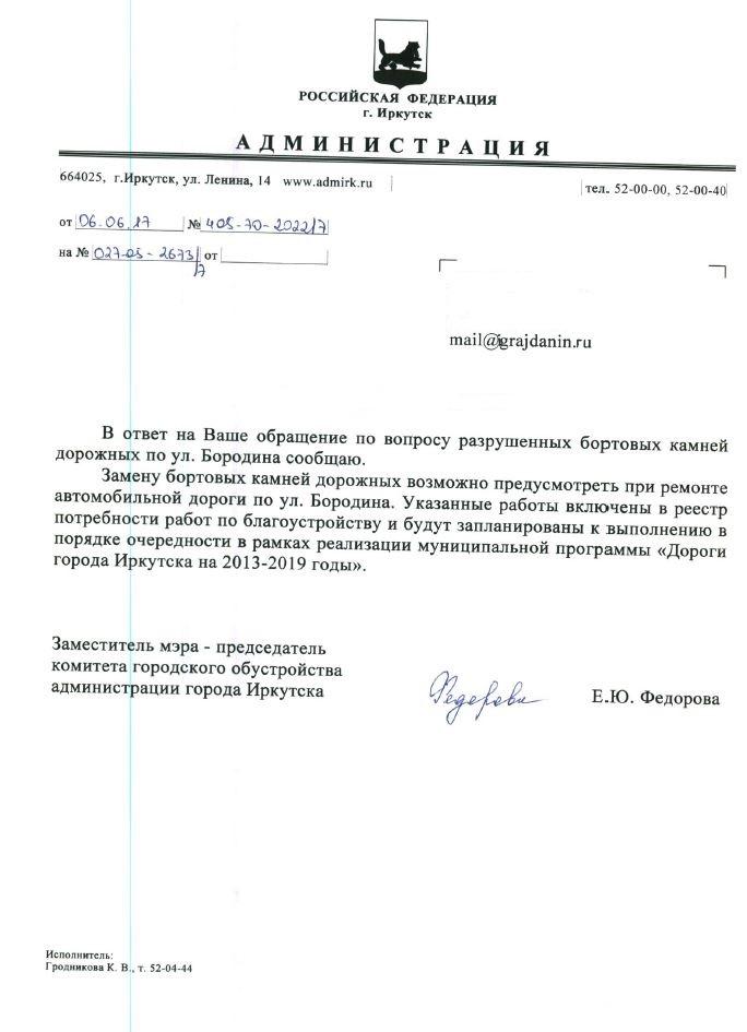 айГражданинОтправлено 12.05.2017: "Администрация города Иркутска"