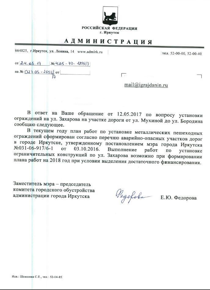 айГражданинОтправлено 12.05.2017: "Администрация города Иркутска"