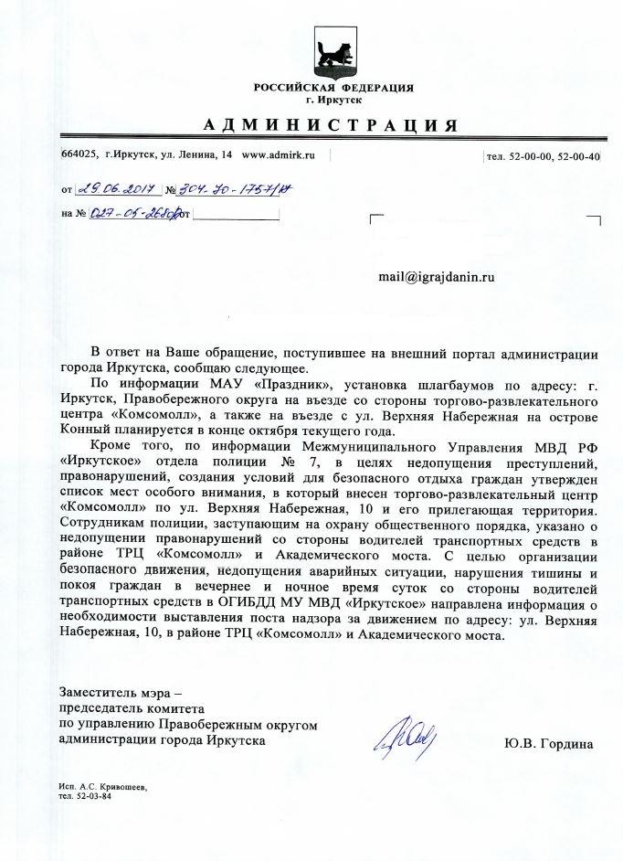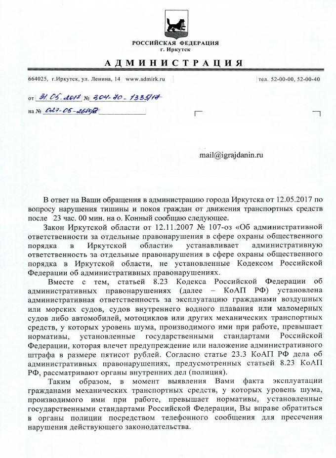 айГражданинОтправлено 12.05.2017: "Администрация города Иркутска"