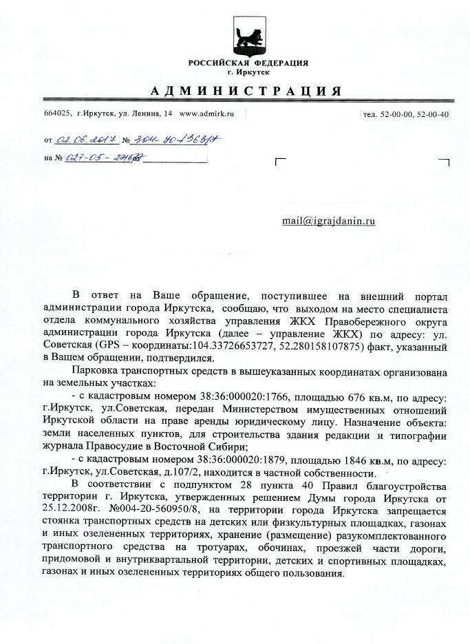 айГражданинОтправлено 12.05.2017: "Администрация города Иркутска"