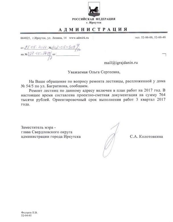айГражданинОтправлено 12.05.2017: "Администрация города Иркутска"