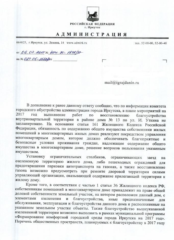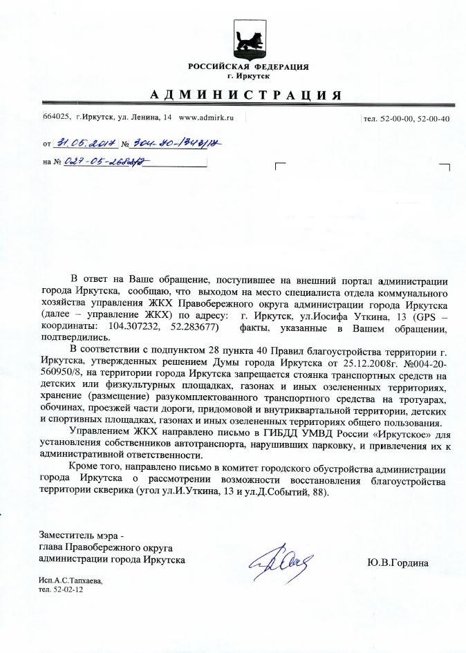 айГражданинОтправлено 12.05.2017: "Администрация города Иркутска"