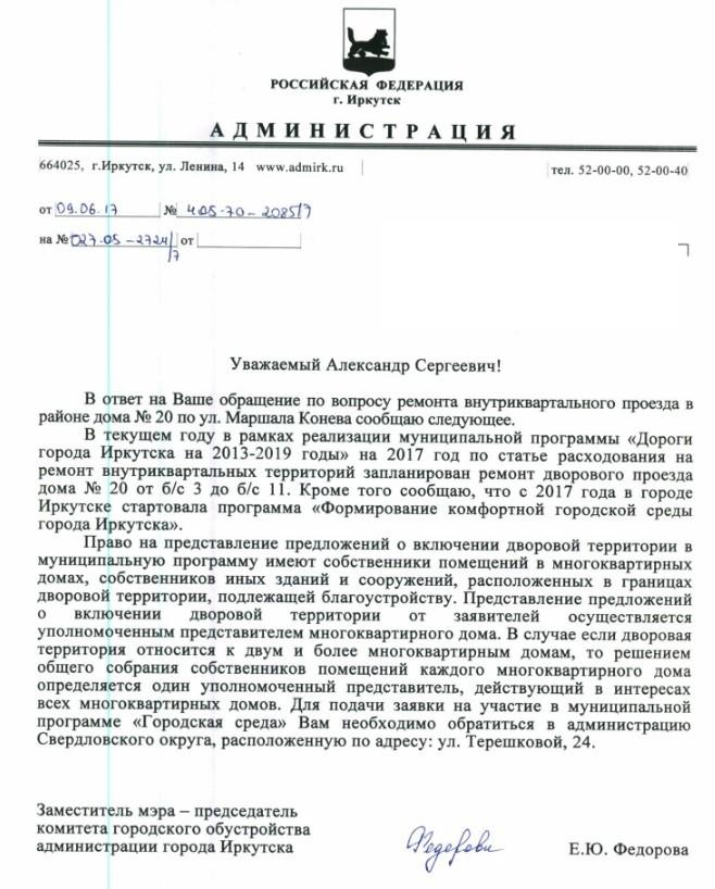 айГражданинОтправлено 16.06.2017: "Администрация Свердловского округа г.Иркутска"