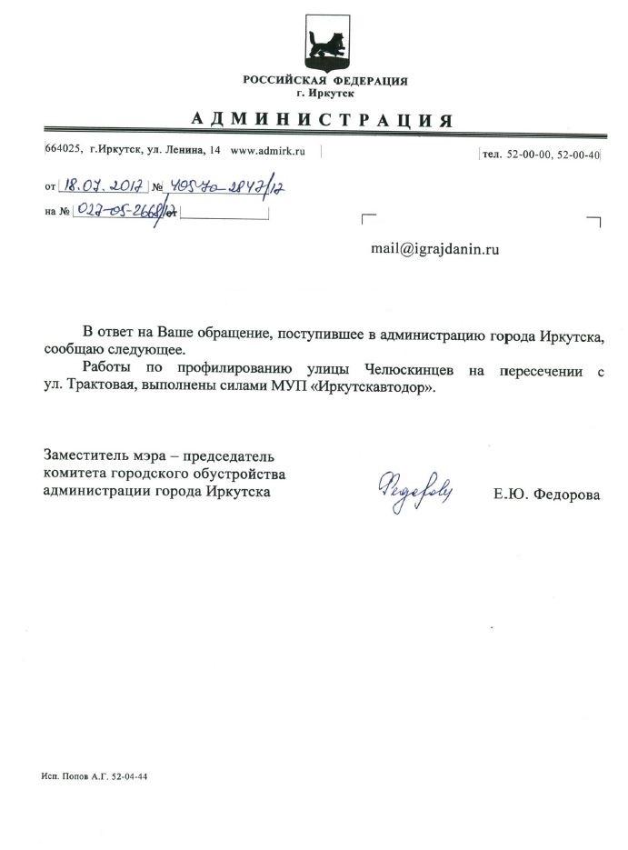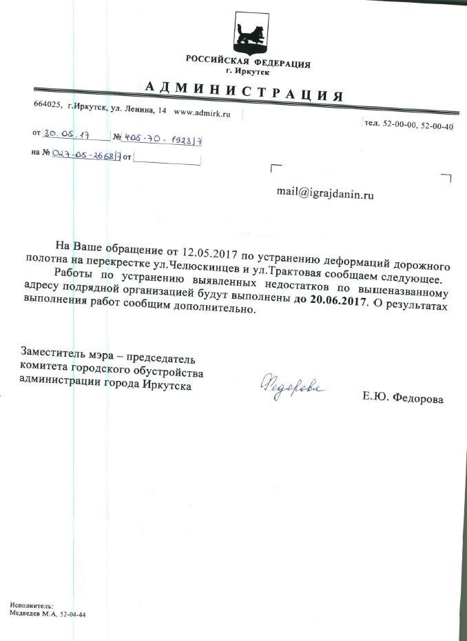 айГражданинОтправлено 12.05.2017: "Администрация города Иркутска"
