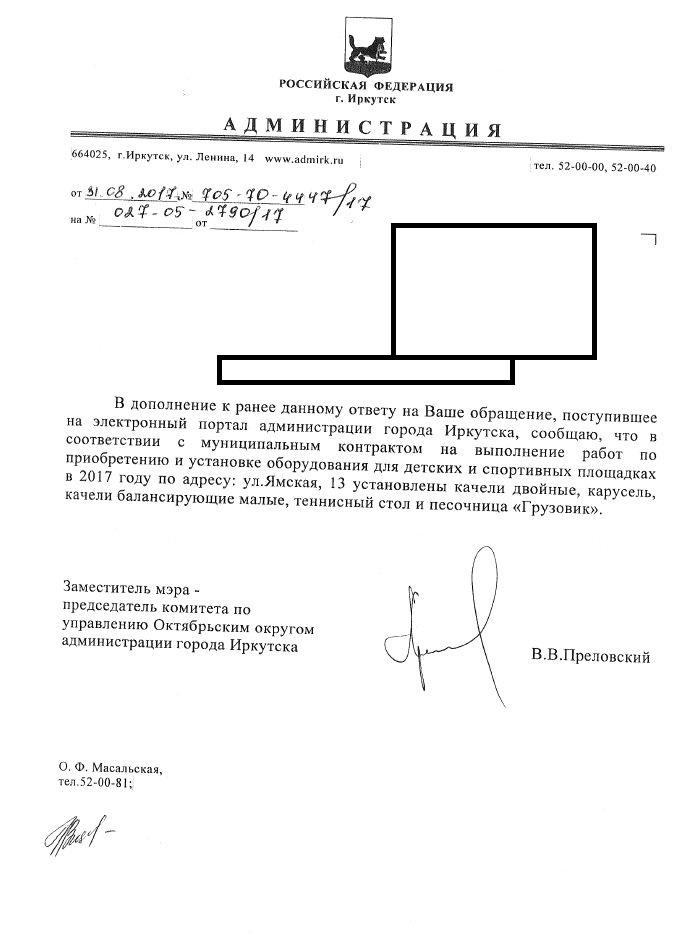 Отправлено 15.05.2017: "Администрация города Иркутска"