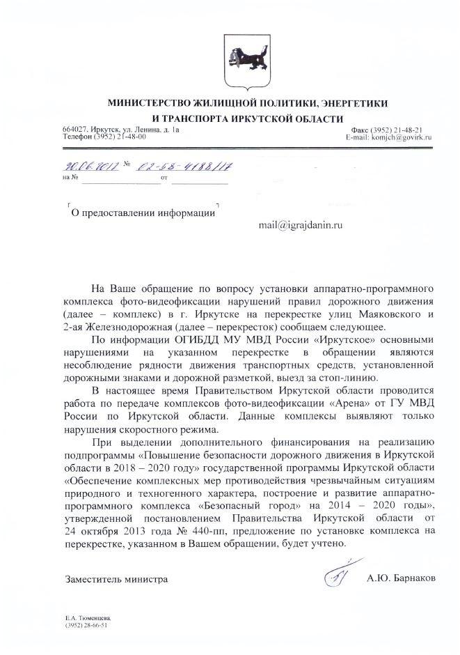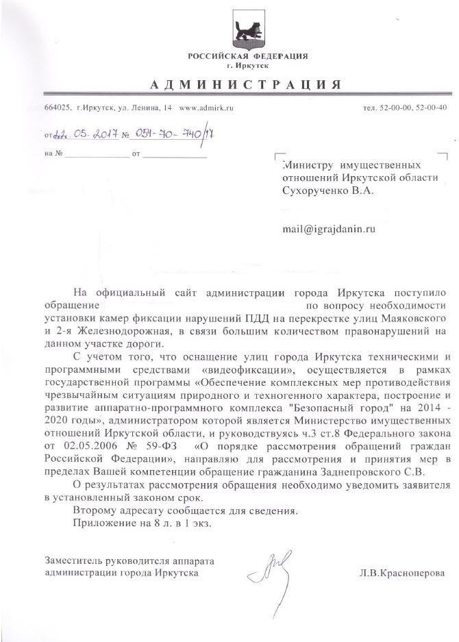 айГражданинОтправлено 15.05.2017: "Администрация города Иркутска"