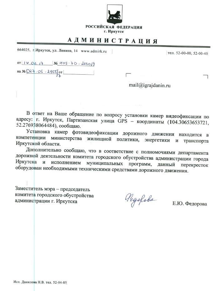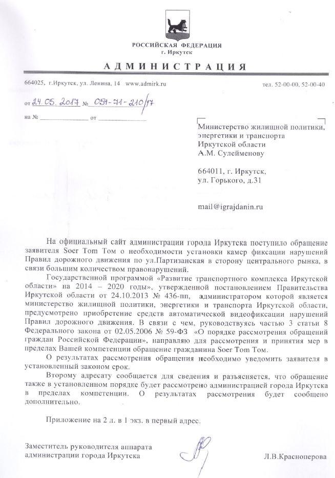 айГражданинОтправлено 16.05.2017: "Администрация города Иркутска"