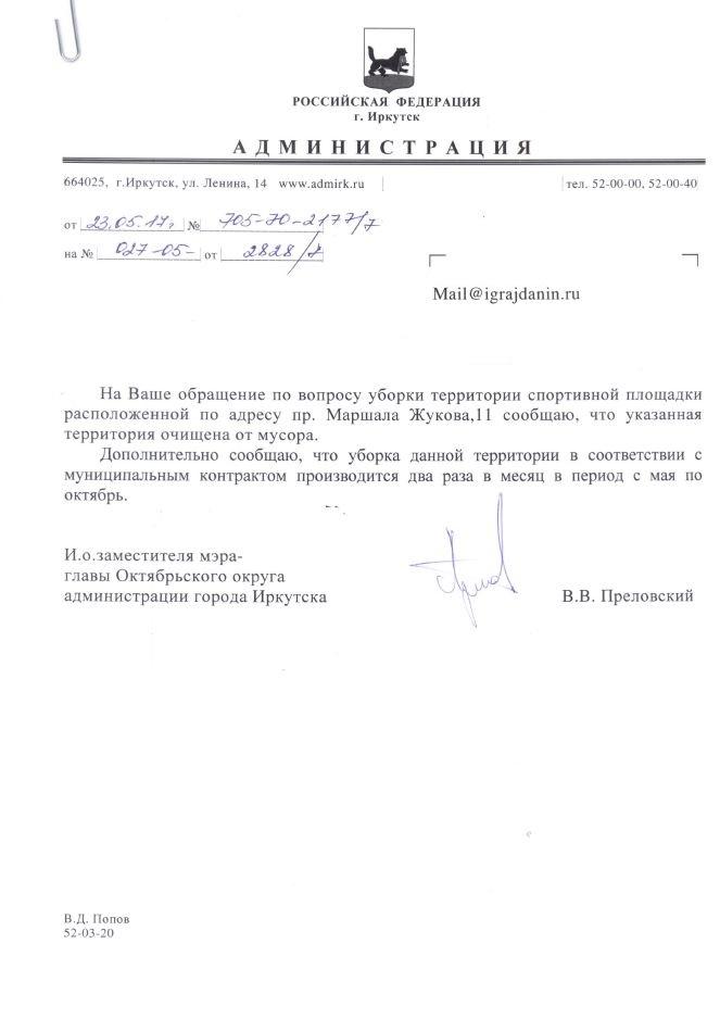 айГражданинОтправлено 16.05.2017: "Администрация города Иркутска"