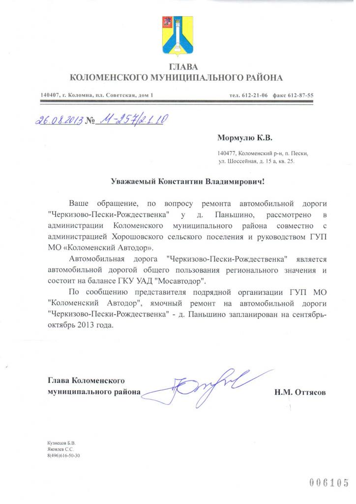 айГражданинОтправлено 20.08.2013: "Администрация Коломенского муниципального района"