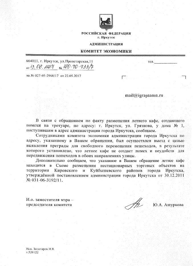 айГражданинОтправлено 19.05.2017: "Администрация города Иркутска"
