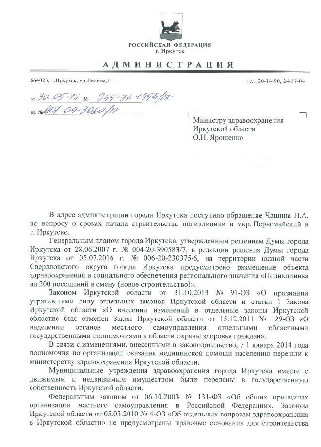 айГражданинОтправлено 22.05.2017: "Администрация города Иркутска"