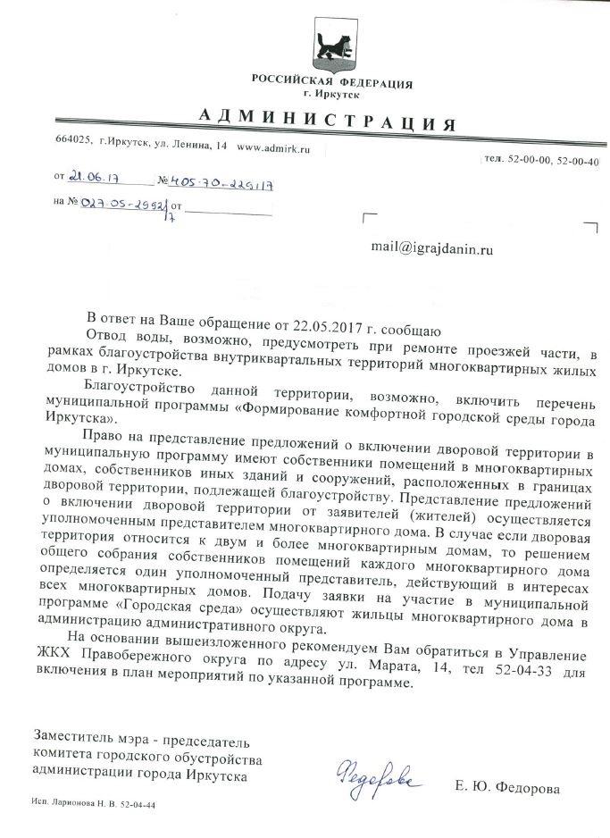 айГражданинОтправлено 22.05.2017: "Администрация города Иркутска"