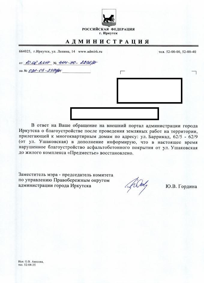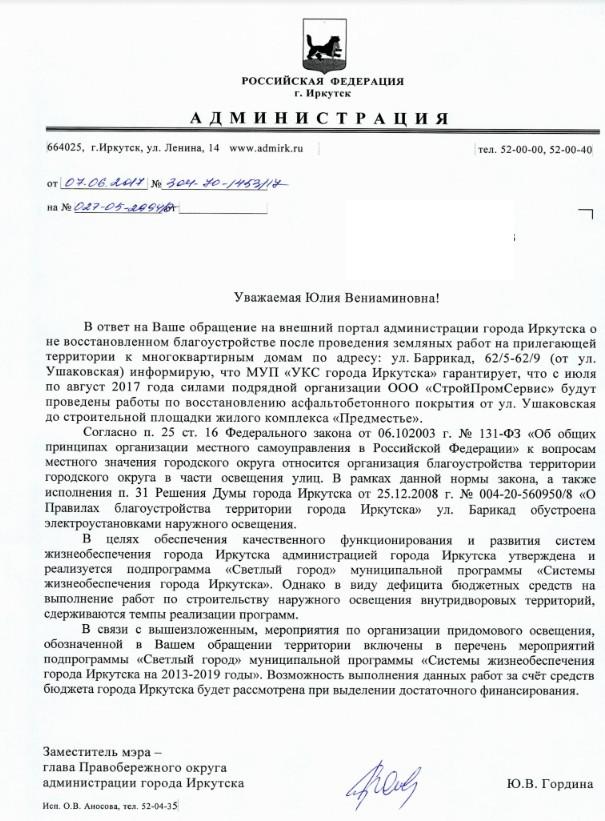 айГражданинОтправлено 22.05.2017: "Администрация города Иркутска"