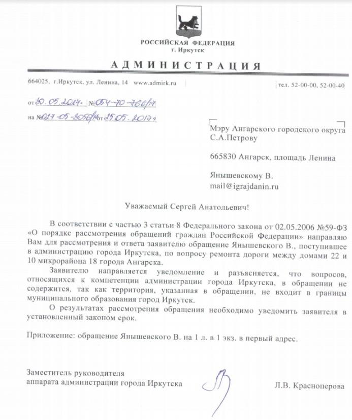 айГражданинОтправлено 23.05.2017: "Администрация города Иркутска"