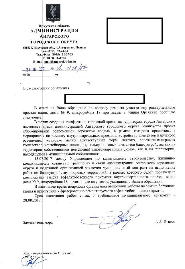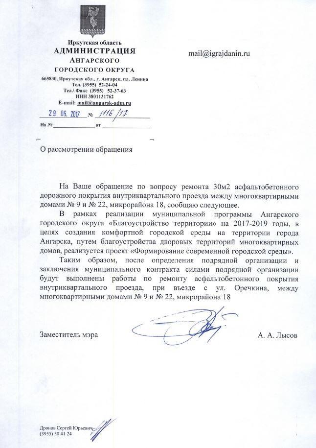 айГражданинОтправлено 30.06.2017: "Администрации города Ангарска"