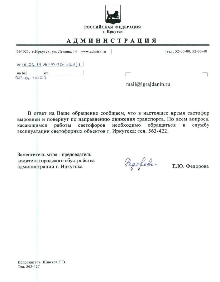 айГражданинОтправлено 23.05.2017: "Администрация города Иркутска"