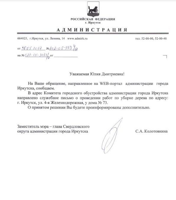 Отправлено 23.05.2017: "Администрация города Иркутска"