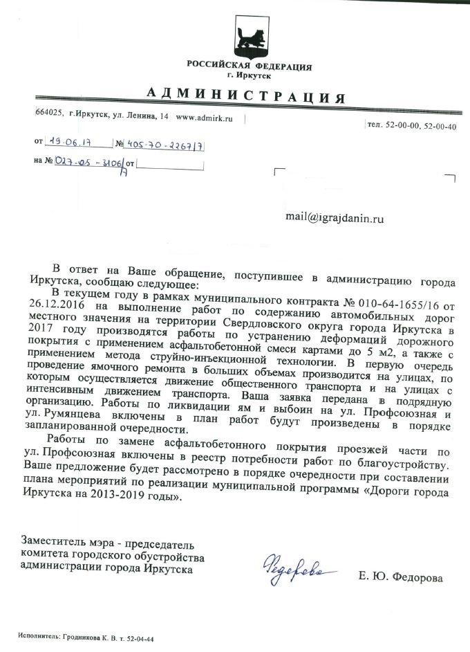 айГражданинОтправлено 24.05.2017: "Администрация города Иркутска"